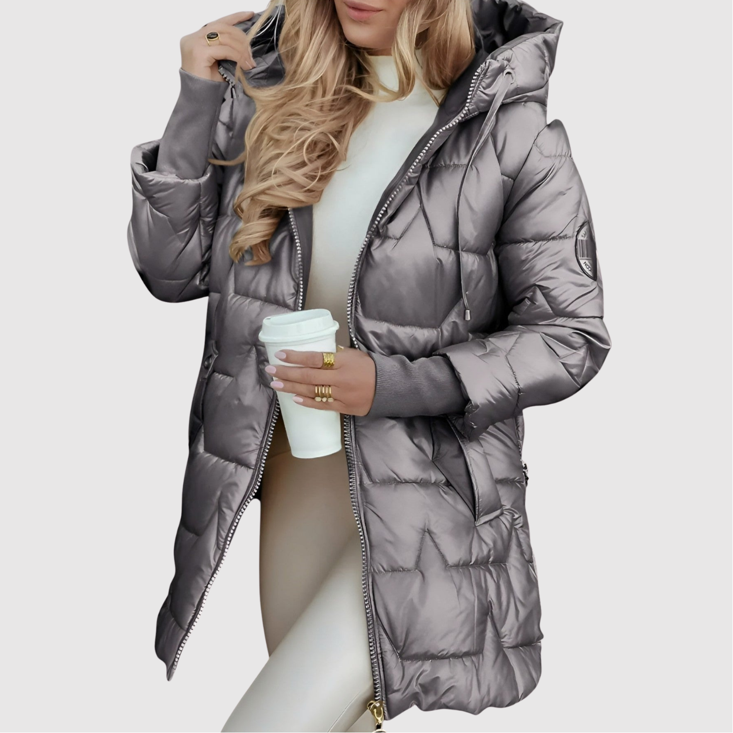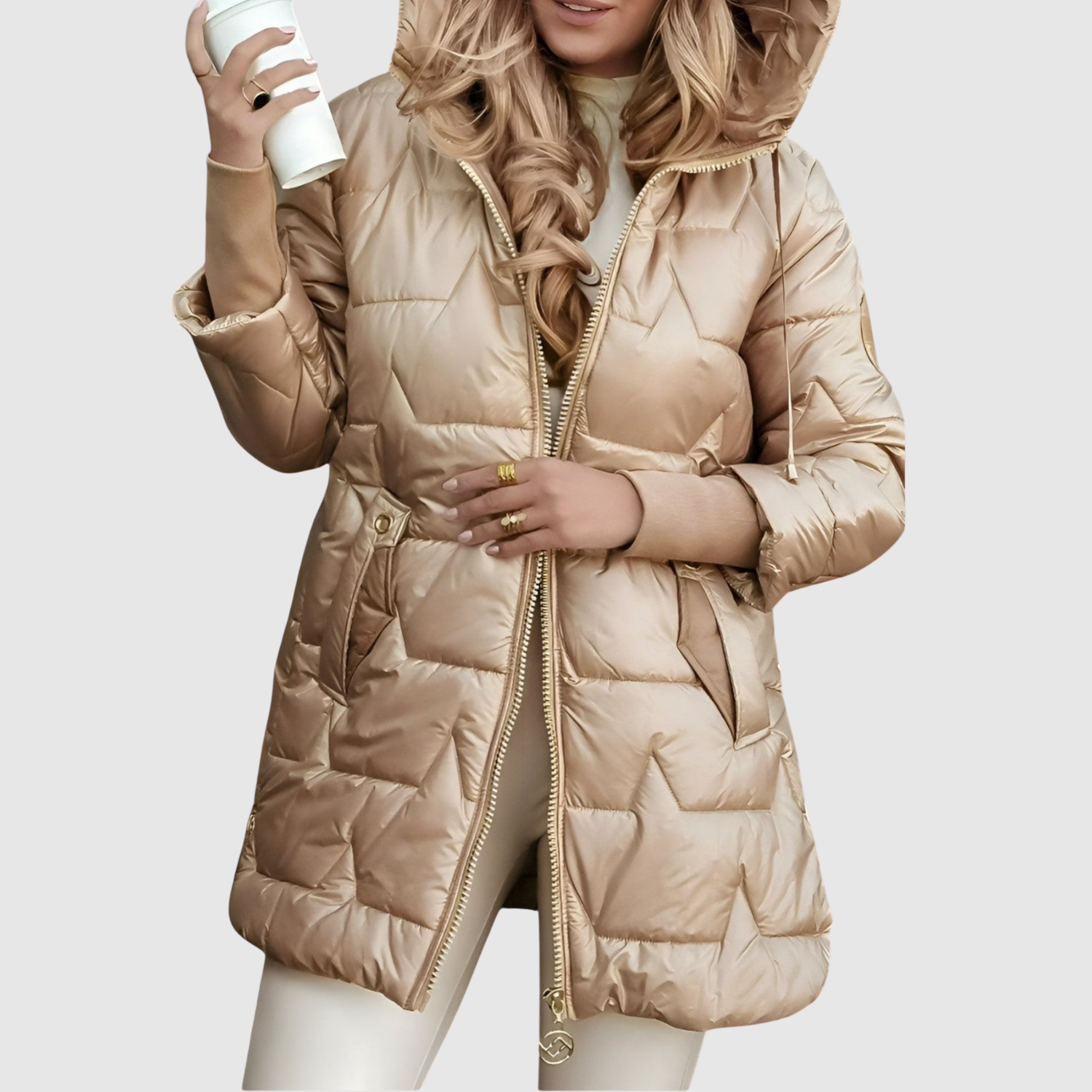 Jelena – Dlouhá zimní prošívaná bunda s kapucí