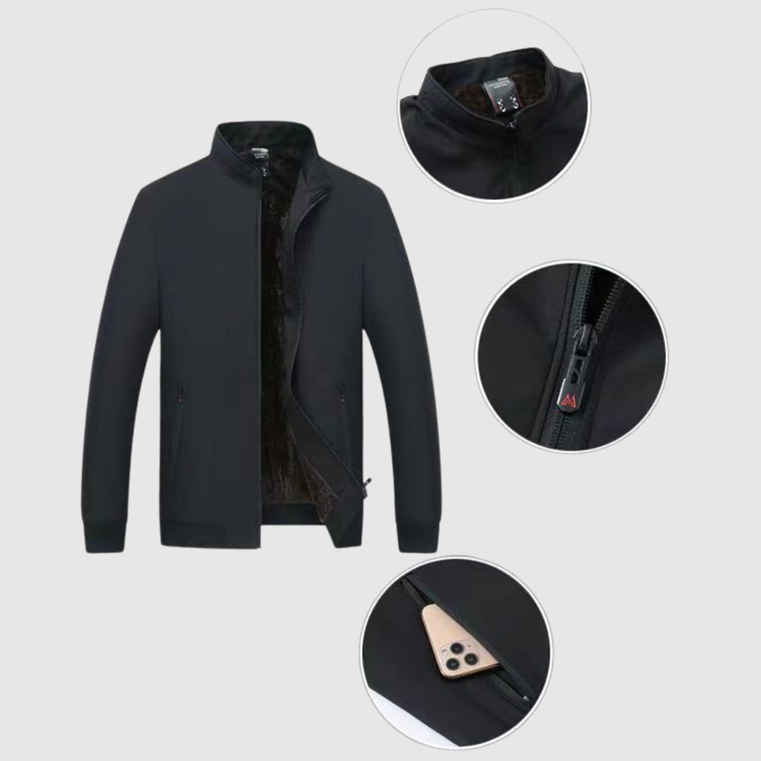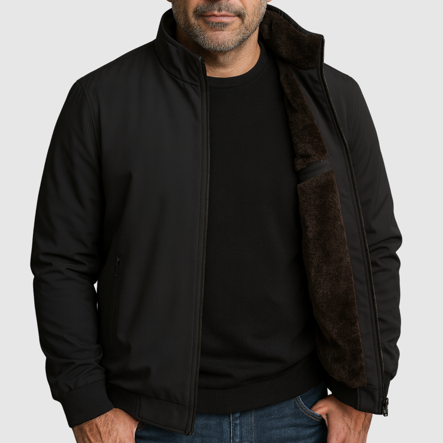 Tato bunda typu "bomber" kombinuje čistý design a teplo pro zimu. Měkká vnitřní podšívka poskytuje pohodlí a ochranu před chladem, zatímco vnější část dodává moderní a mužský siluetu. Vhodná jak pro každodenní nošení, tak pro večerní vycházky.