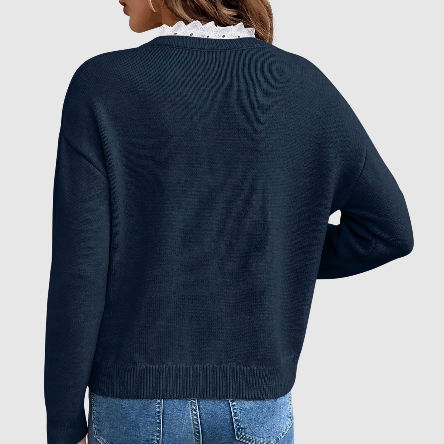 Nora - Pletený svetr s V-výstřihem a krajkou